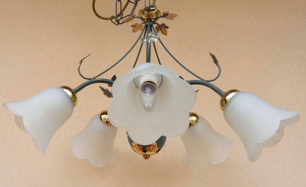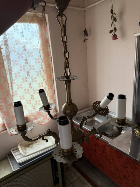 Vintage 3 ágú, gyertyaizzós, réz függőlámpa, csillár