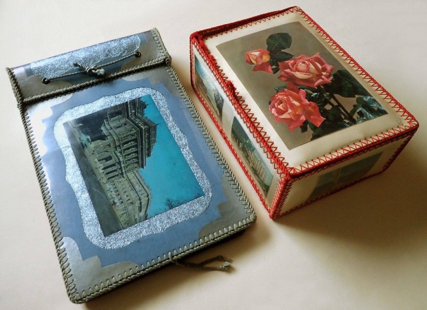 6 db régi retró vintage faragott vésett népi fa doboz csomag fadoboz