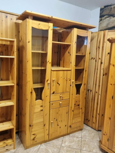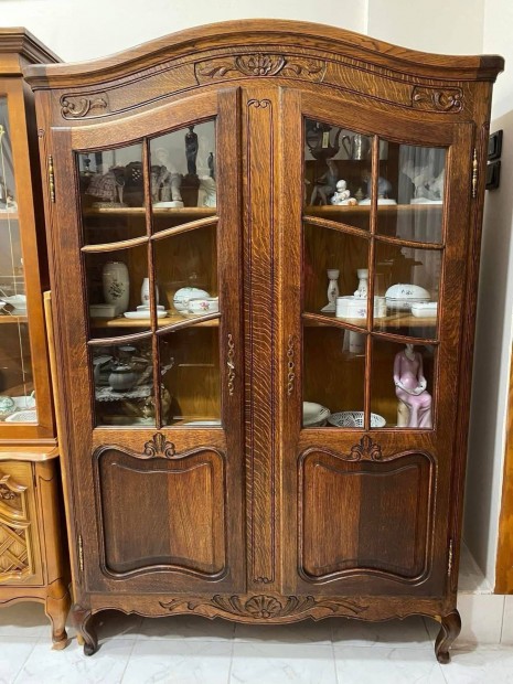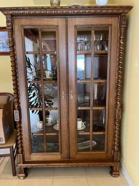 Masszív, régi tömörfa vitrines szekrény / tálaló szép állapotban