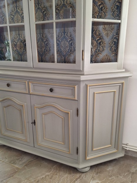Masszív, régi tömörfa vitrines szekrény / tálaló szép állapotban