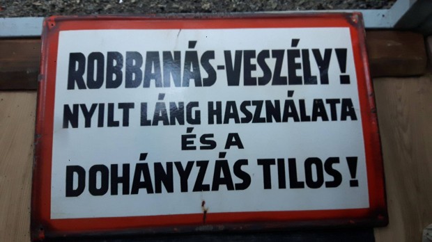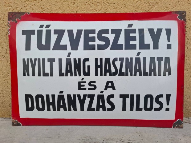 Szép Régi zománctábla "Nyilt Láng Használata És A Dohányzás