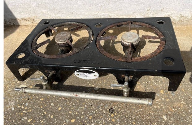 Retro Csepel két lapos gáz rezsó, zsámoly!