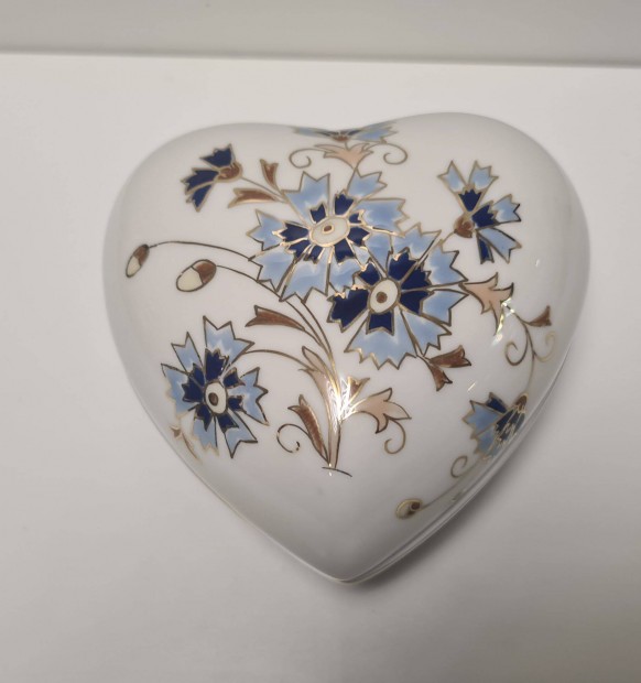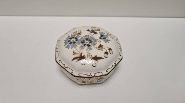 Zsolnay porcelán ékszertartó doboz búzavirág mintával