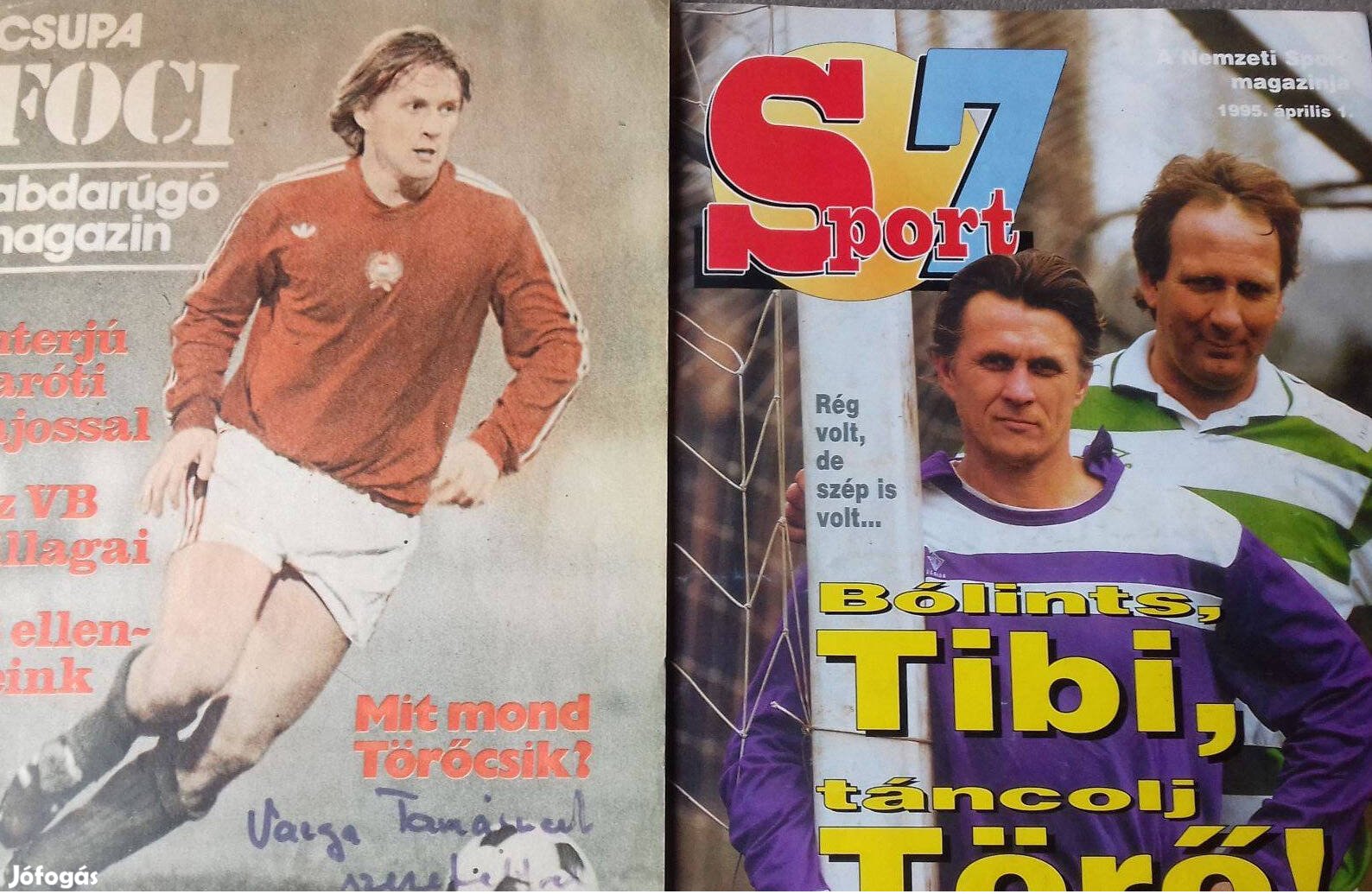 Csupa Foci labdarúgó magazin.Az 1978-as VB előtt jelent meg. A címlapon Törőcsik András dedikálásával, hátlapon Nyilasi Tibor aláírásval kifogástalan állapotban. + Sport 7 a NS magazinja 1995.áprílis 1.Címlapon : Bólints Tibi Táncolj Törő.Vannak további UTE ill.Ujpesti Dózsa relikviáim is küldhetek listát.