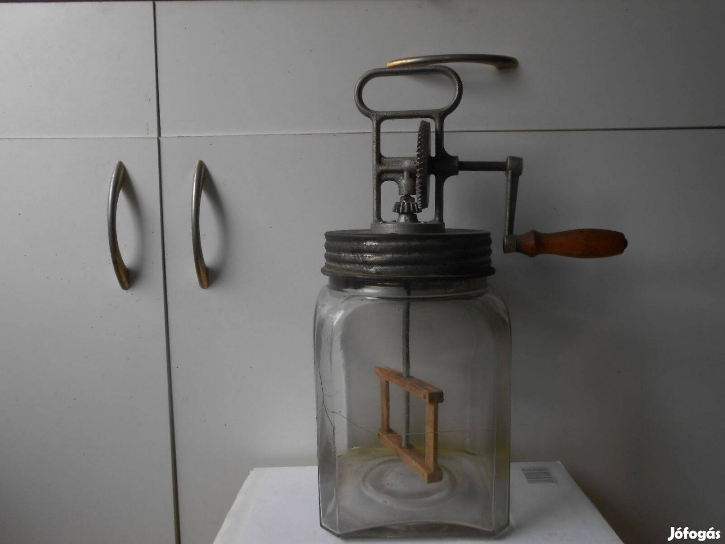 Eladó a képen látható, az 1950-es években használt vajköpülő/4literes/Sajnos az üvege repedt,de gyűjteménybe kiváló.Érd:.Szállítani nem tudom.