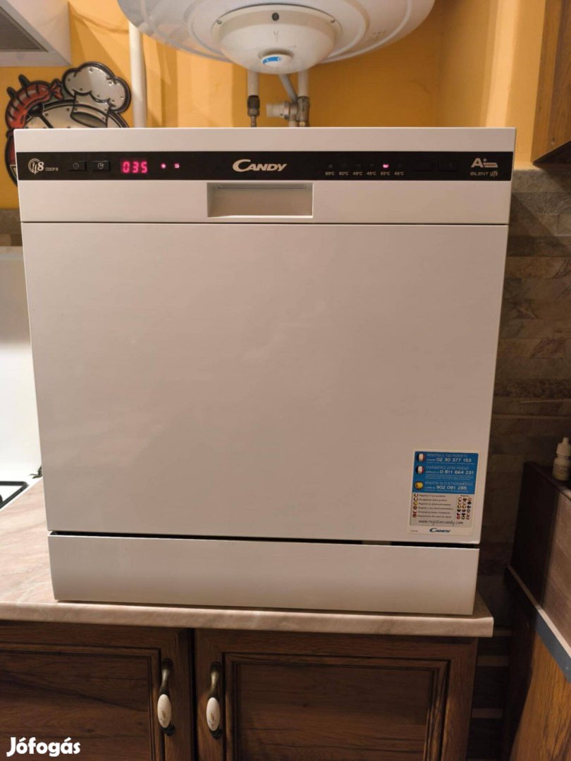 Candy asztali mosogatógép 8 terítékes, teszi a dolgát de sajnos a kosár rozsdásodik. (mindennapi használatban van) Méret: 55cm széles, 59cm magas, és 50cm mély. Ára: 30.000 Ft