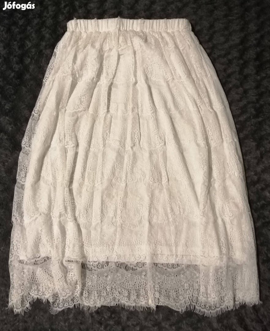 Sosem hordott fehér csipke szoknya, S-M méret, térd alá érő.