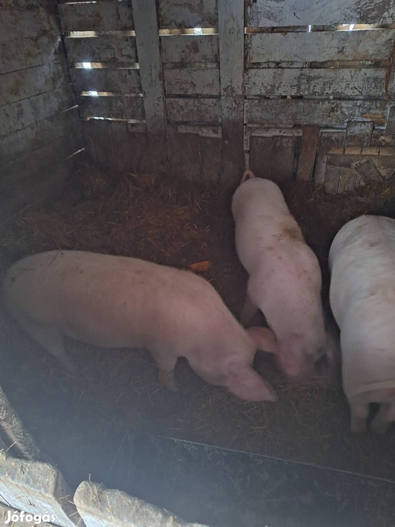 Eadó 2 darab sűdő koca malac. Kb 65-70 kilosak jó étvággyal rendelkeznek. Nem tápos malacok. Anyja turcsi és pietrin keverék , a kan amivel búgattam az belga lapáj és nagy magyar fehér keverék. A háromból csak kettő eladó amik egybe 120 000 ft. Ár fix. Csere nem érdekel