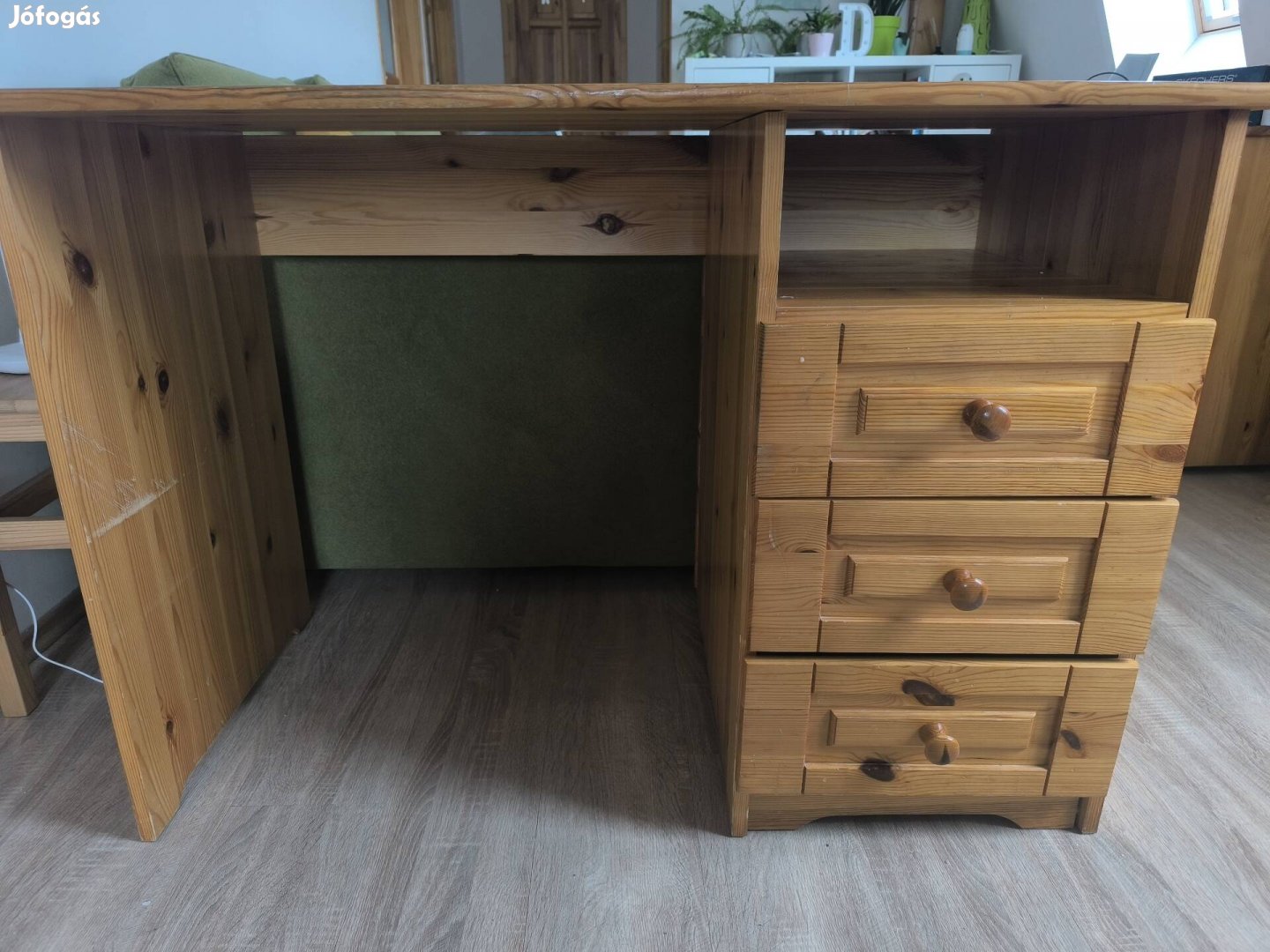 2 db egyforma, fenyő íróasztal. Használt, de csiszolással, lakkozással felújítható. 110*59.5 cm a lapja, magassága 77 cm. Budapestre esetleg el tudjuk vinni. Ennek költsége megbeszélés szerint. Az ár 1 darabra értendő.
