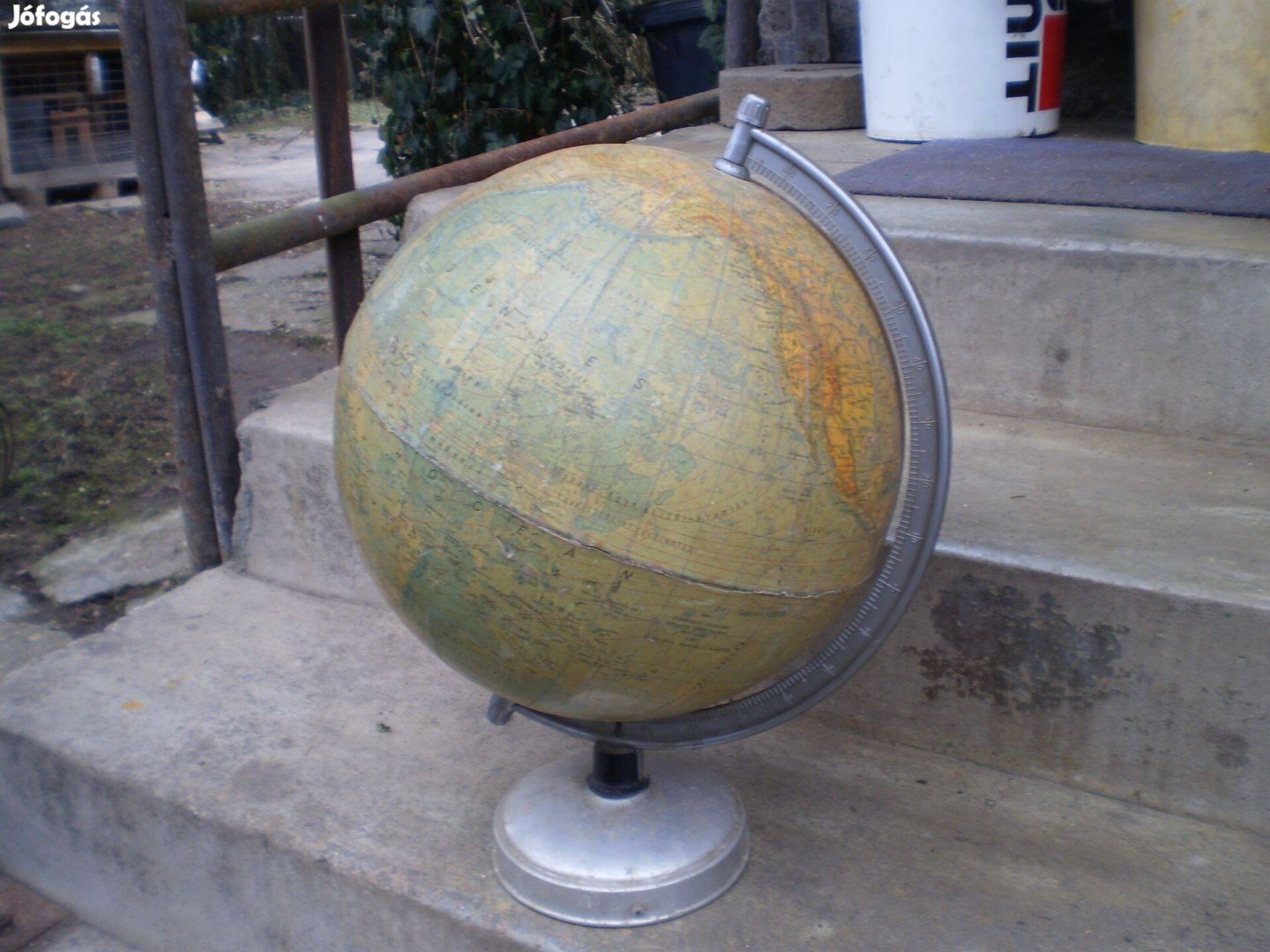 Régebbi iskolai földgömb. Kicsit fakó.Alumínium talppal . Átmérője 35 cm magasság 50cm. megnézés ,szállítás egyeztetés alapján.