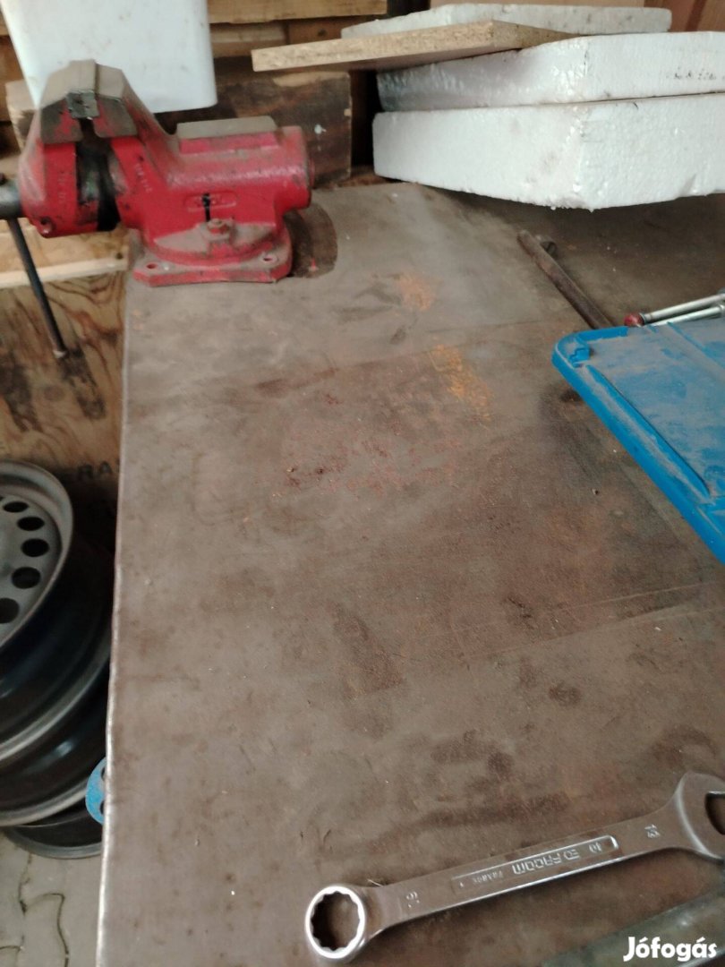 Satupad Masziv 40x40zártszelvényból hegesztve 1300hosszú 800széles 900magas Fiókokkal satuval ellátva.
