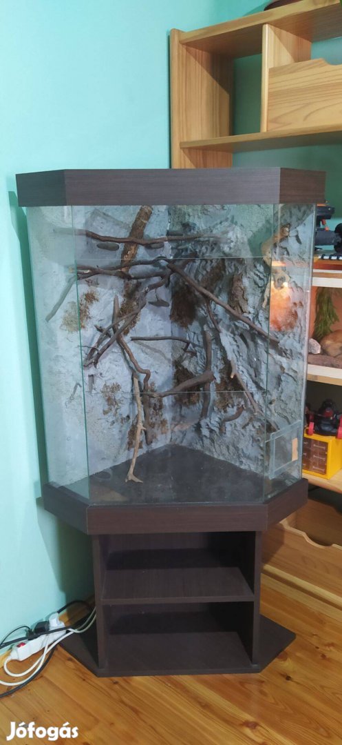 Eladó a képeken látható állapotban egy sarokba való kaméleon terrárium. A hátfala beton, csobogó készítésére van berakva cső. Nem tudom hány kiló, de nehéz, szállításban nem tudok segíteni.