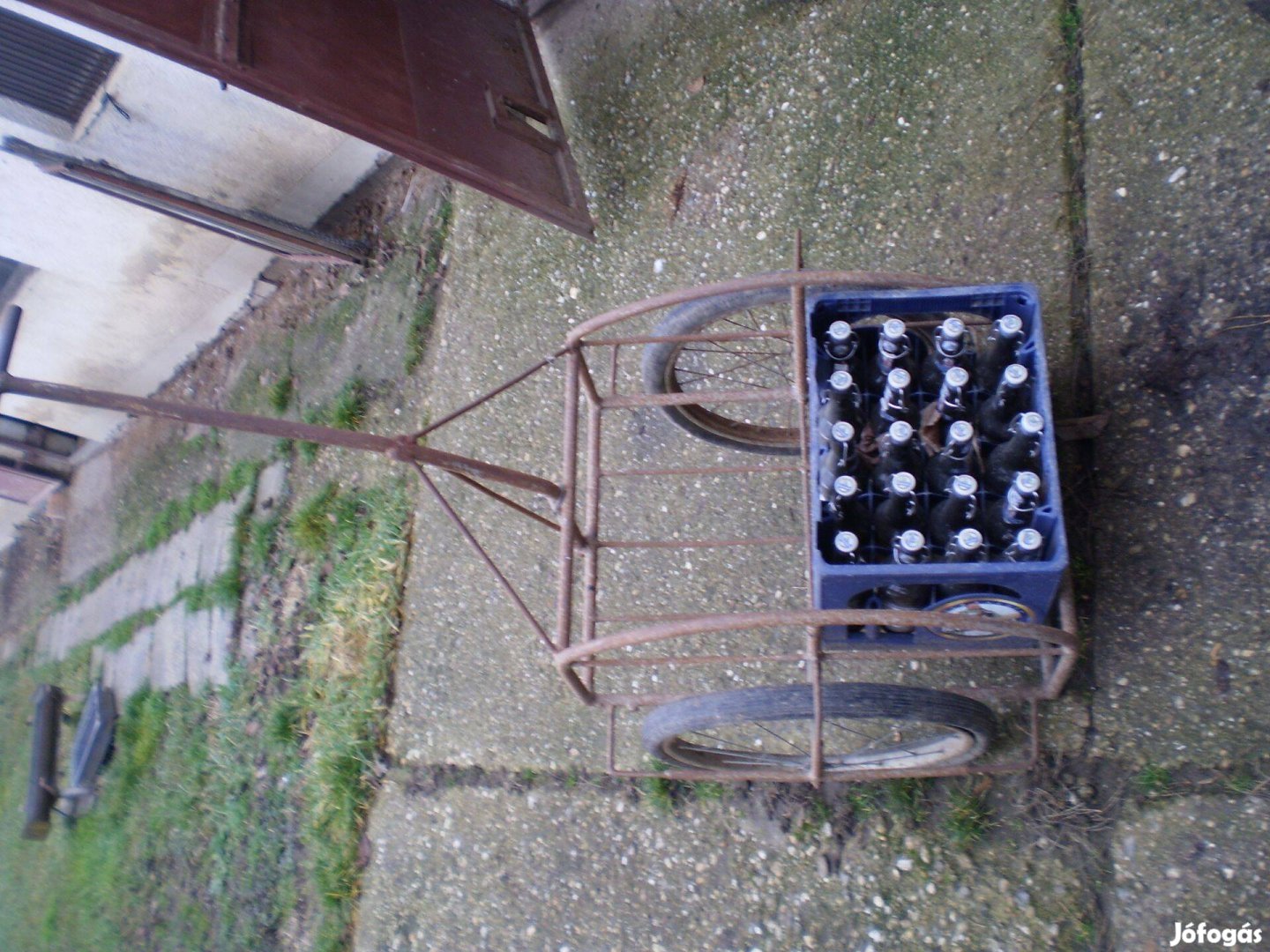 Használt ,felfújhato kerekű kézi kiskocsi. Bevásárláshoz ,szállításhoz. Fém gumi kerékkel.Mérete: 2db sörösrekesz kényelmesen belefér. Súlya könnyű. megtekintése,szállítása egyeztetve.1 rekesz csatos üveg 0.5l-es ajándékba hozzá.