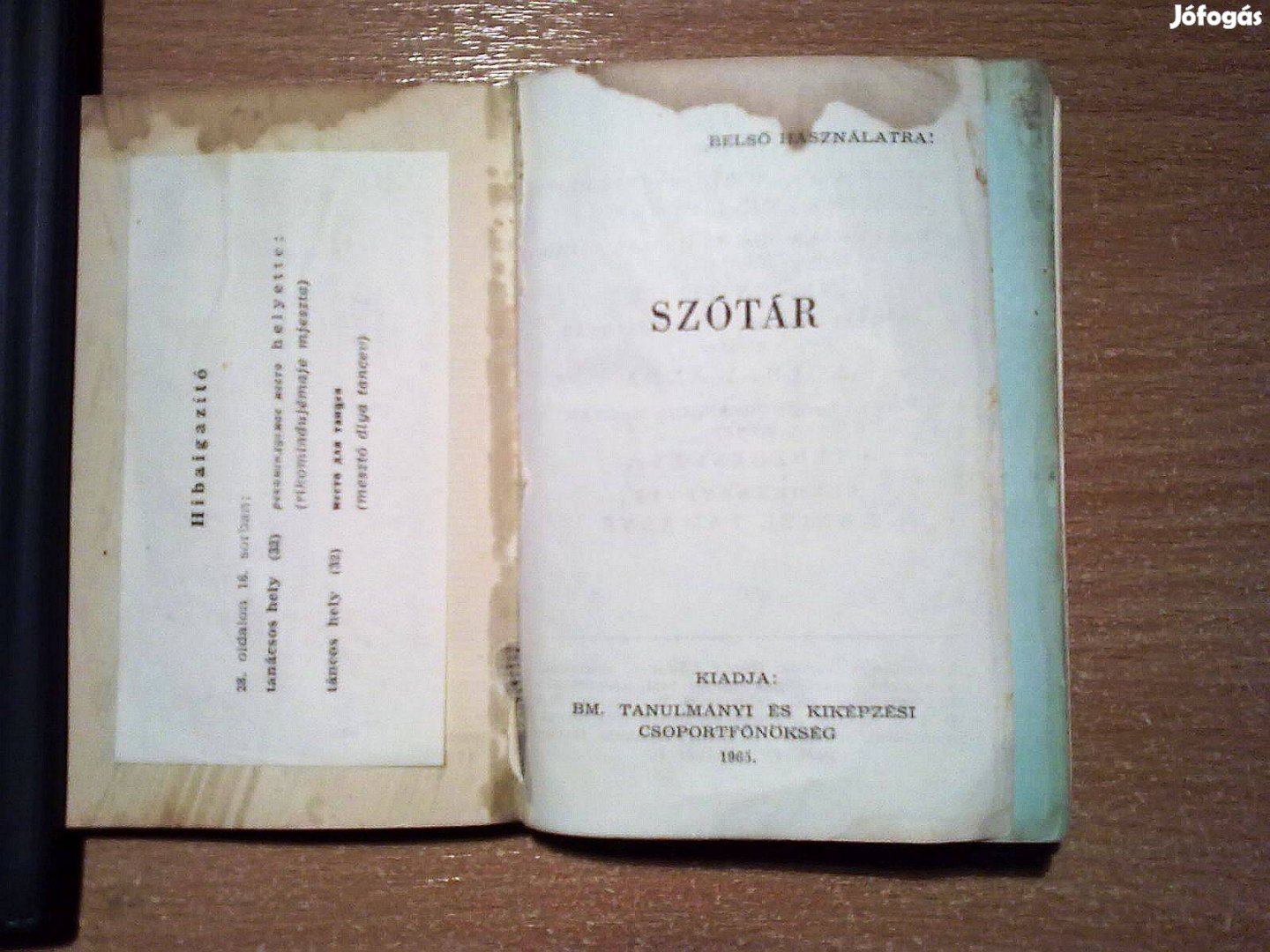 Kiadja: BM. Tanulmányi és Kiképzési Csoportfőnökség, 1965-ben