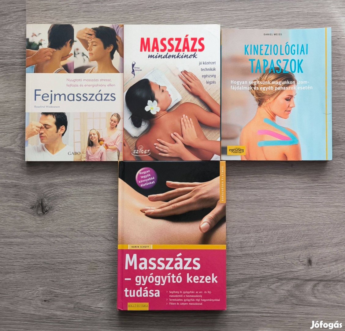 Eladó egy 5 darabból álló, átfogó könyvcsomag a masszázs, a relaxáció és a gyógyító technikák iránt érdeklődőknek. A könyvek kiválóan alkalmasak otthoni használatra, tanuláshoz vagy szakmai inspirációnak is.