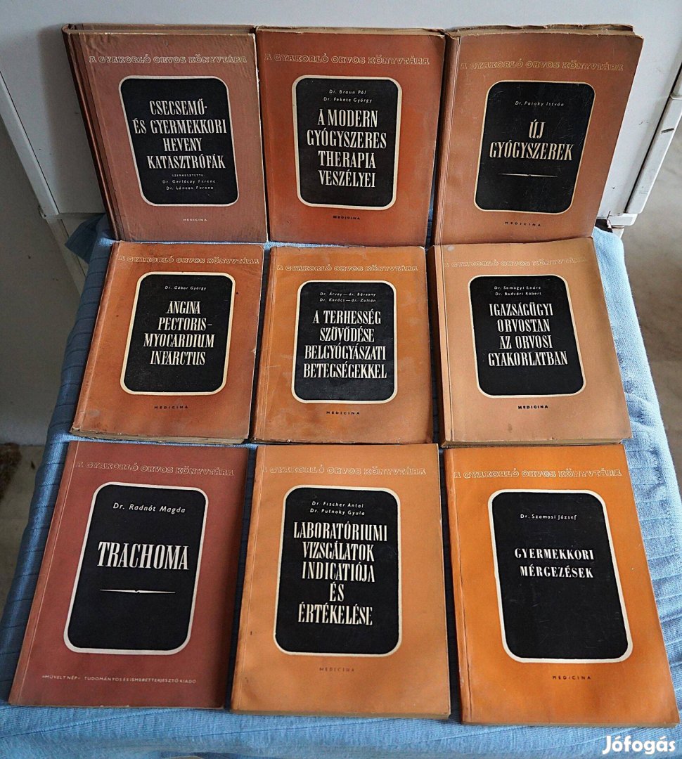 A Gyakorló Orvos Könyvtára, Medicina Könyvkiadó, Budapest, 1950-60-as évek. ("Az eszméletlen beteg" c. könyv 2x van meg.)