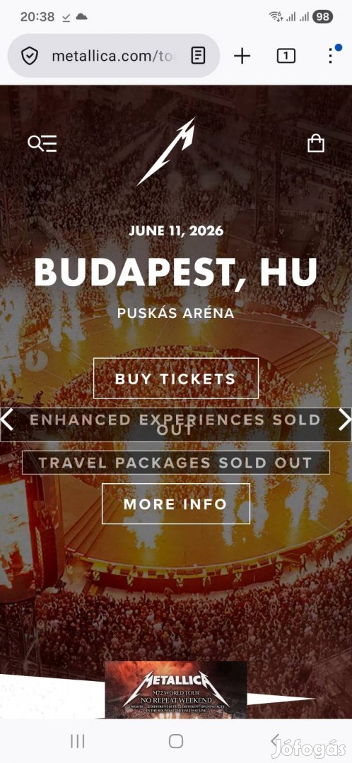 Eladó egy Metallica 2 napos ülőhelyes koncertjegy a stadion alsó részén,kiváló helyen! 102 szektor 25 sor!