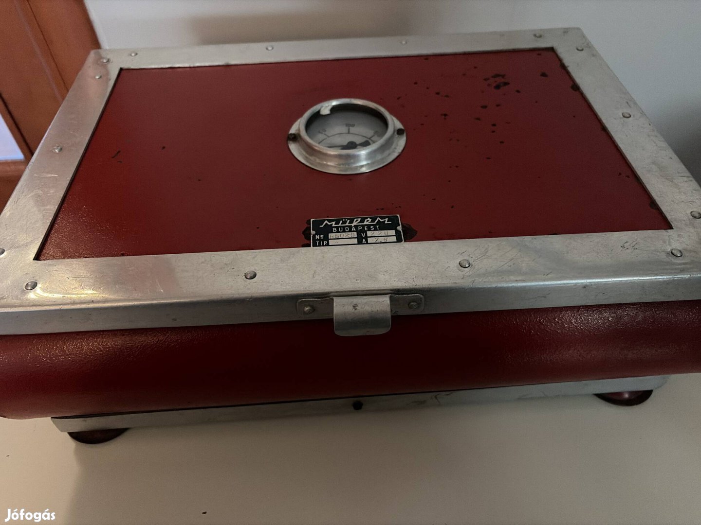 Ez a kép egy ritka, vintage "meleg dauer" hajsütő szettet (melegvíz-rendszerű dauerolót) ábrázol, amelyet régebben női fodrászatokban használtak.