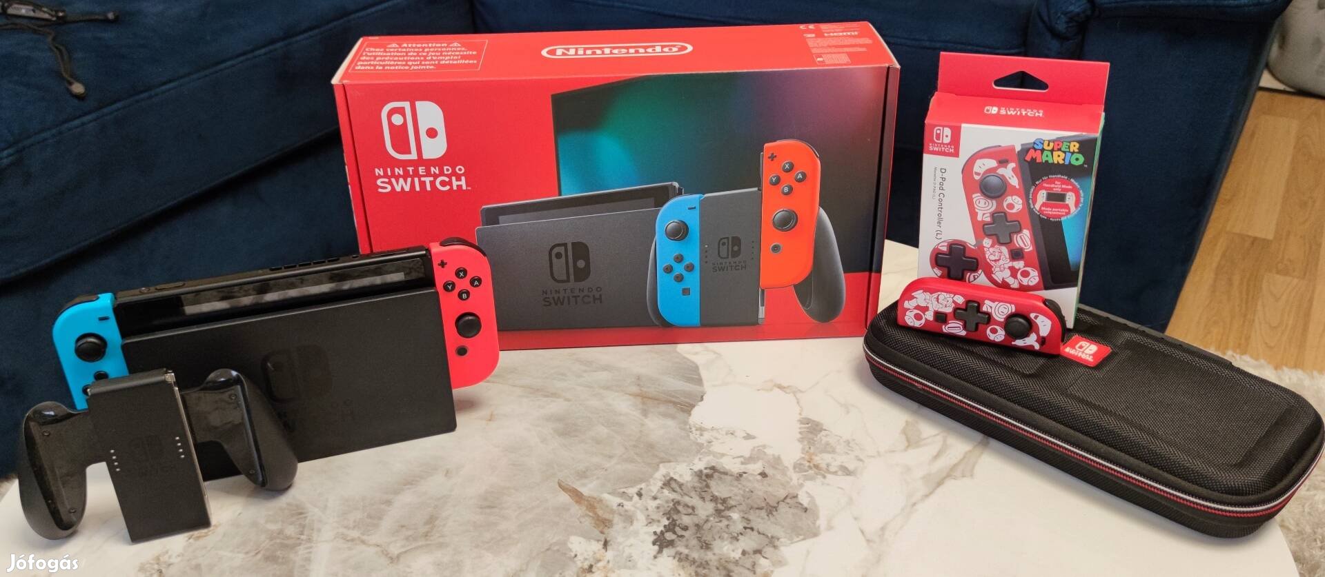 Eladom a képen látható Nintendo Switch gépcsomagot, mely tartalmazza: konzol minden gyári tartozékával, egy hordtáska kártyatartó rekeszekkel, egy Hori Super Mario D-Pad Controller (L), mely csak a konzolra csatlakoztatva használható. Minden megkímélt, szép állapotban van. A kijelzőn és a dokkoló egységen egy-egy apró, szinte nem látható, és semmilyen módon nem zavaró "sérülés/surlódás" van, amit a félreértések elkerülése végett tüntetek fel. Az ár a postát nem tartalmazza.