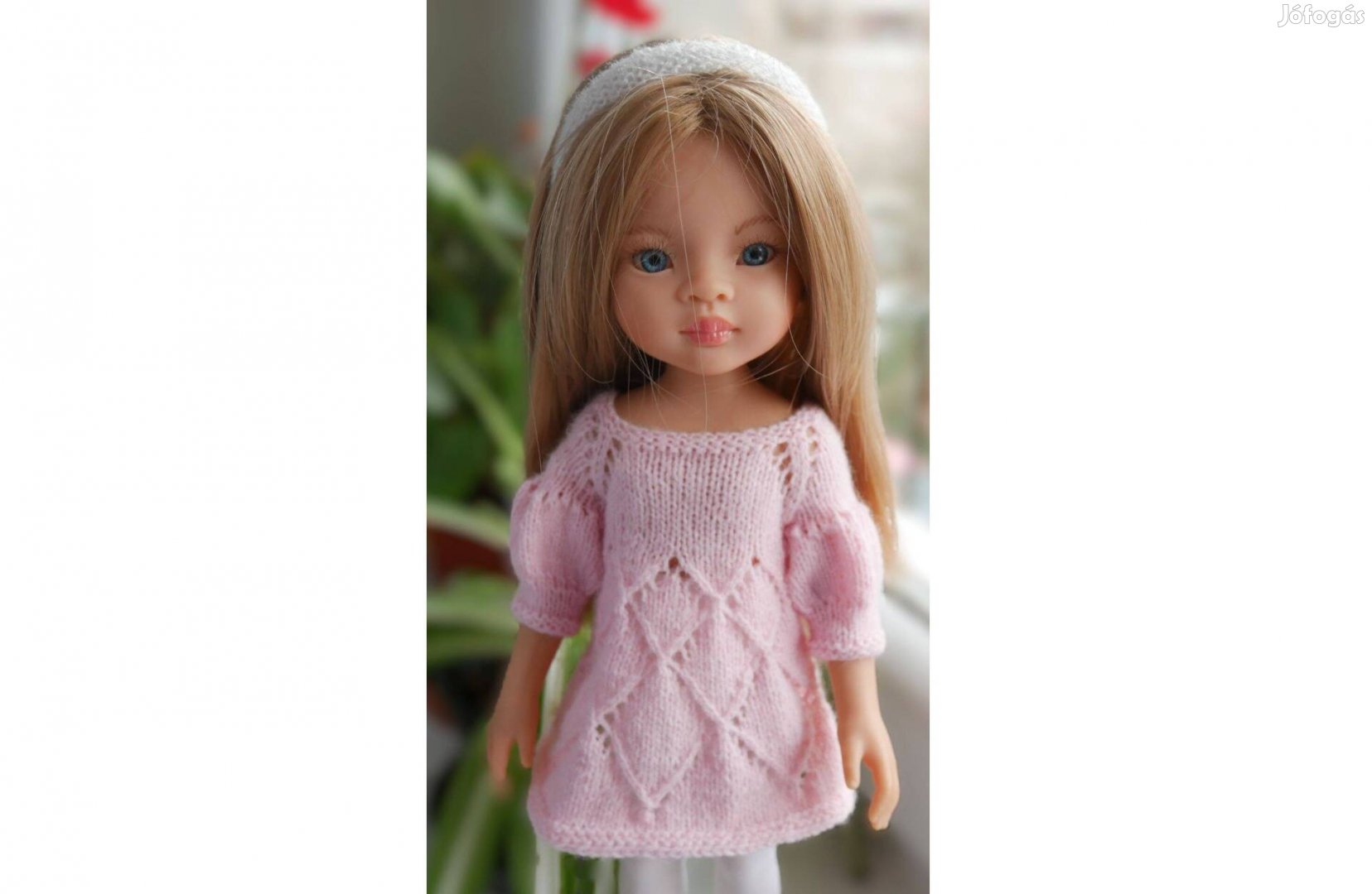 Eladó a képeken látható, új, kézi kötésű babaruha szett 32 cm-es Paola Reina babára. A szett tartalma: rózsaszínű csipkemintás ruha és fehér fejpánt.