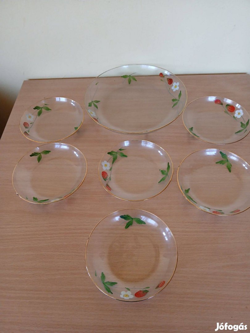 Salgótarjáni üveg tál készlet eper szamóca, mintával