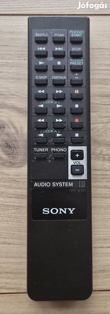 Eladó a képek szerinti esztétikai állapotú Sony RM-S101 Típusú eredeti távirányító. Elemtartó tiszta, törések repedés nincsenek.