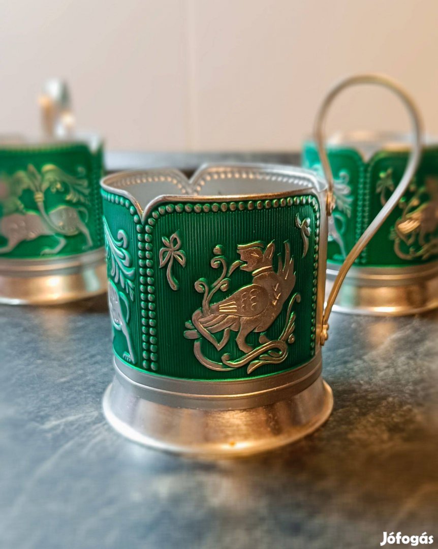 60-as évekbeli Szovjet teás pohártartó. 4db. Hibátlan állapotban