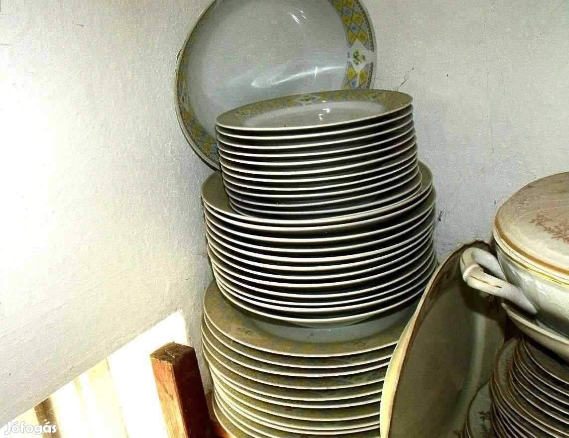 12-személyes porcelán tányérkészlet eladó. A készlet teljes, új és hibátlan. Valódi porcelán; a lámpa fénye szépen átvilágít rajta.