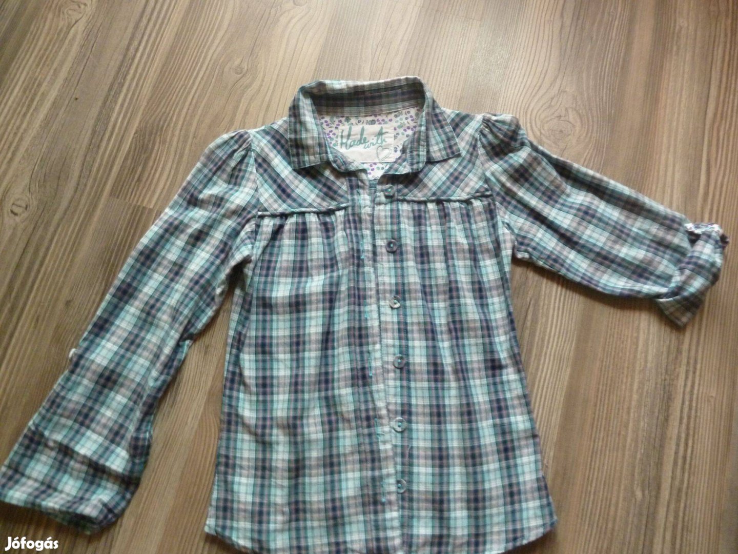 Eladó egy 134/140-es C&A-s kislány blúz/felső. Az ujját felhajtva is lehet hordani.