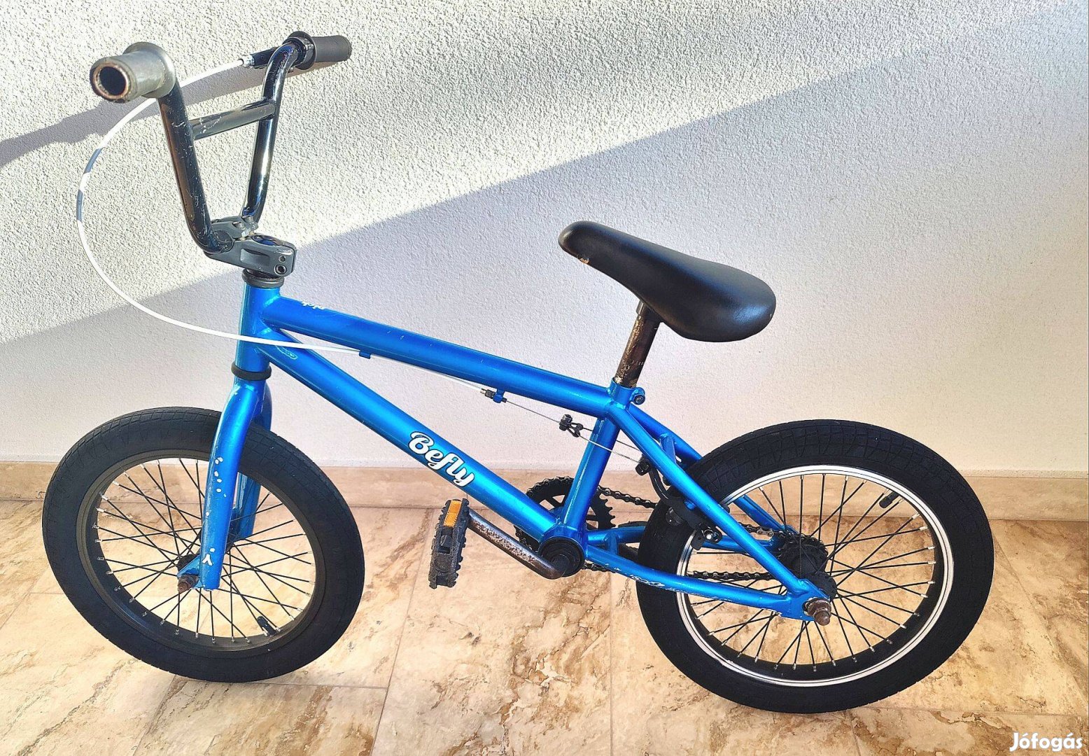 16" gyerek belfy BMX eladó. 2 szezont használtuk, új első fék+bowden, ajándék egy új külső gumiköpeny és 2 db belső tömlő. Jelenleg mindkét kerékben defektmentesítő slime van, de nagyobbra szeretnénk váltani, ezért a meglévő tartalék gumikat is adjuk a leendő gazdinak. 1-2 "harci" horzsolást leszámítva szép állapotban van, bírja a strapát . Pest megyében házhoz szállítás megegyezés kérdése. Ára 70.000ft (120.000 volt újonnan).