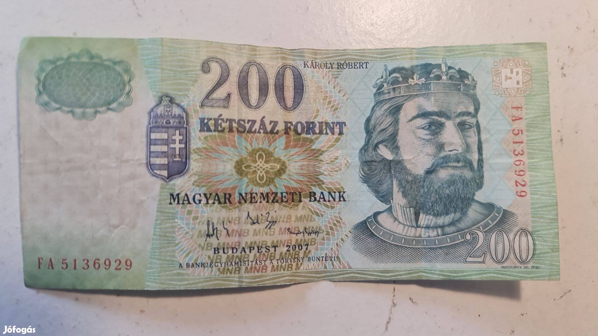 2007-es kiadású magyar kétszáz forintos bankjegy.