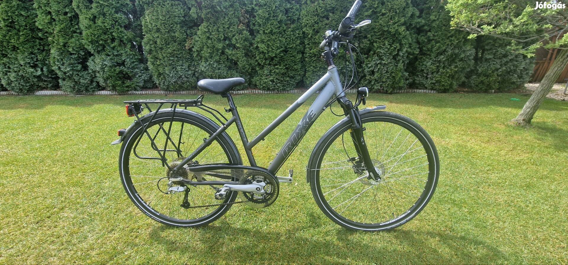 Eladó a képeken látható 28"Rixe női 46-os vázméretű trekking kerékpár. Aluvázas, első-hátsó deore váltóval szerelt,3x9 sebességes, agydinamós és elől-hátul hidraulikus tárcsafékes.