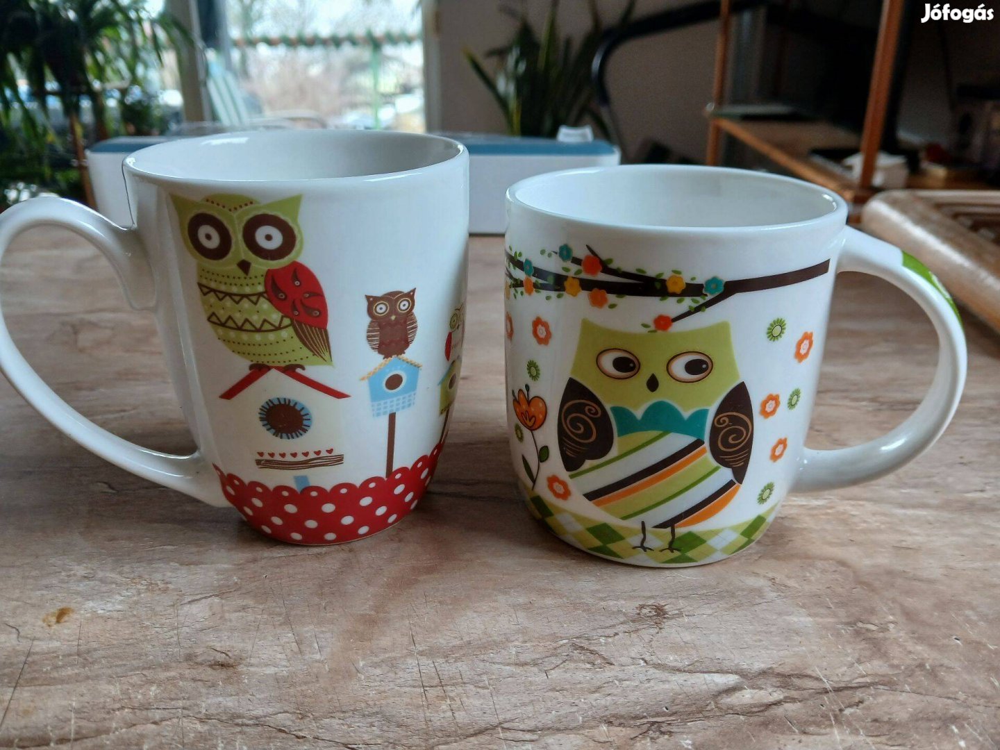 2 db fehér, bagoly mintás bögre eladó!