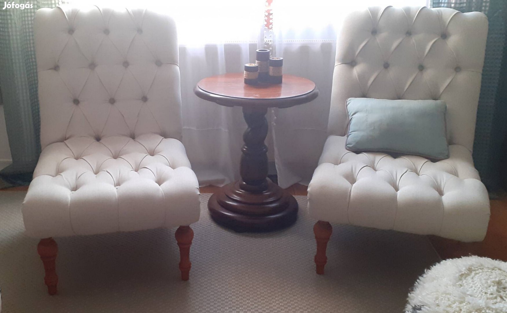 2 db kényelmes, modern, steppelt fotel eladó kifogástalan állapotban, natúr bútorszövet borítással. Méret: 90 cm magas, 68 cm széles. A fotelek tiszta, ápolt lakásban voltak. Ár: 45000 ft/ db