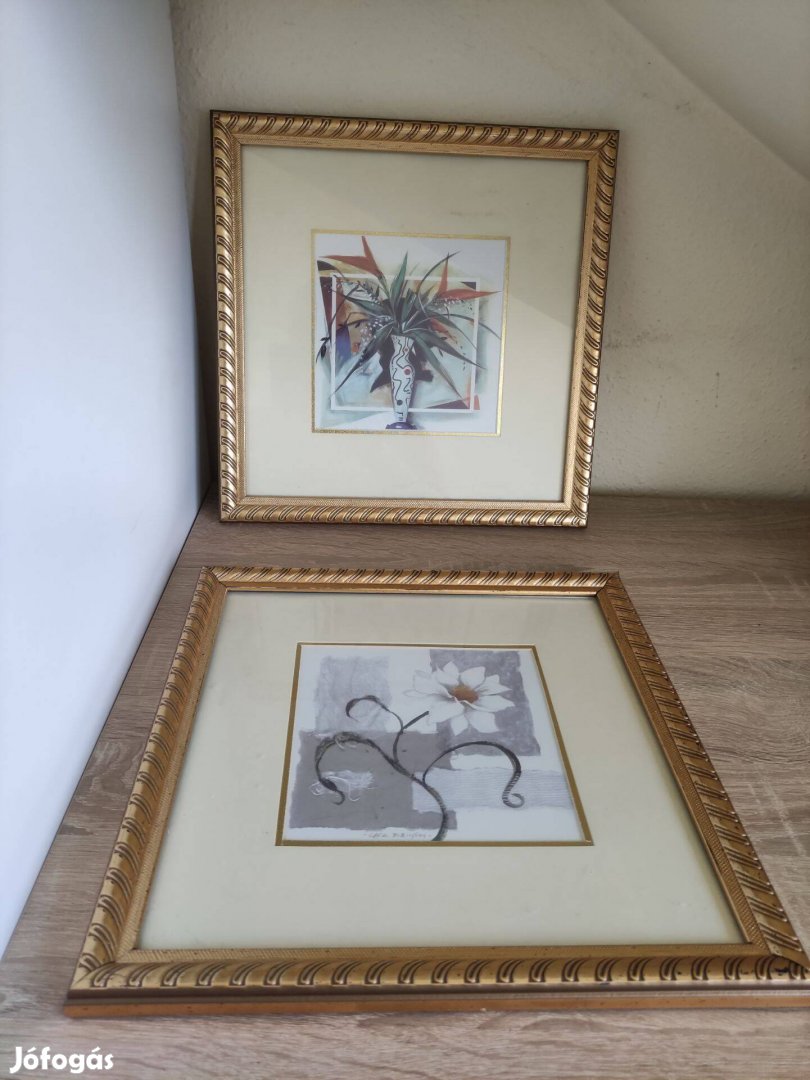 31x31 cm-es 2 db fali kép aranyozott fa kerettel