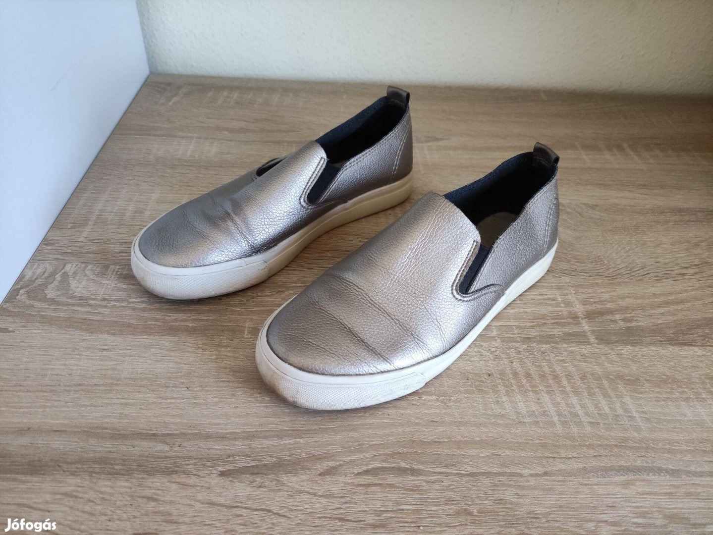 Eladó a képen látható 37-es arany női bebújós cipő. Budapesten is átvehető, vidékre postázom. Packeta 1490.-Ft.