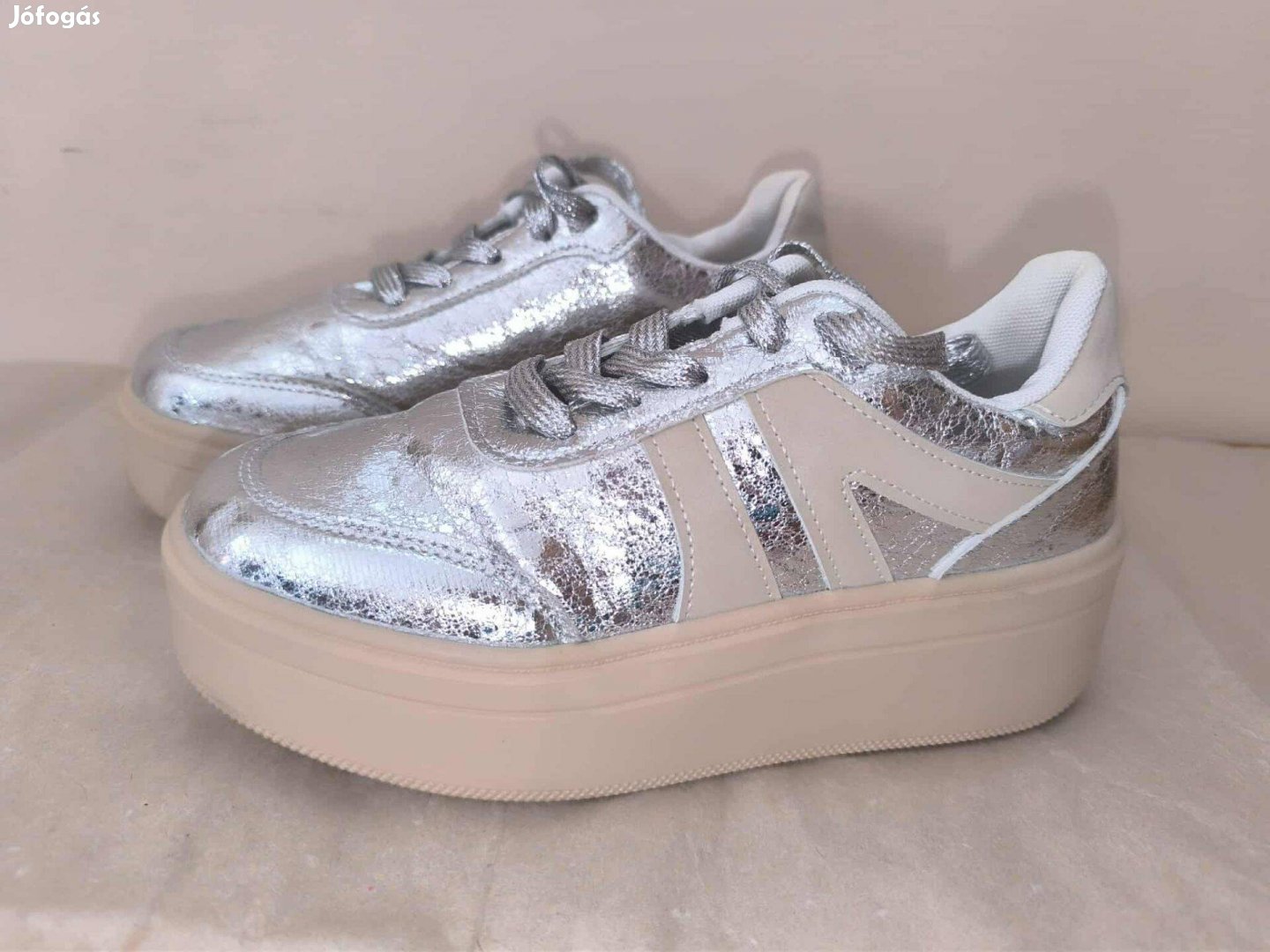 37-es ezüst platformos cipő, bth: 23-23,5 cm