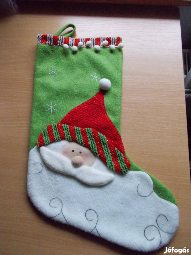 Eladó nagy méretű, szépen díszített Mikulás csizma (45 cm) akasztóval.