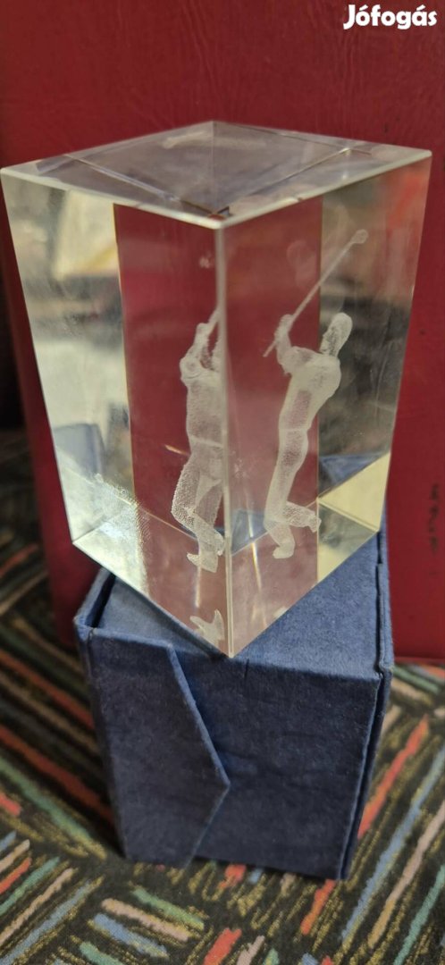 Eladó 2db különleges, 3D lézergravírozott golfozót ábrázoló üvegkristály dísztárgy. A kristály belsejében részletgazdag golfjelenet látható, amely több szögből nézve térhatású élményt nyújt. Elegáns és egyedi dekoráció, tökéletes ajándék golfkedvelők számára, irodai dísznek, díjnak.