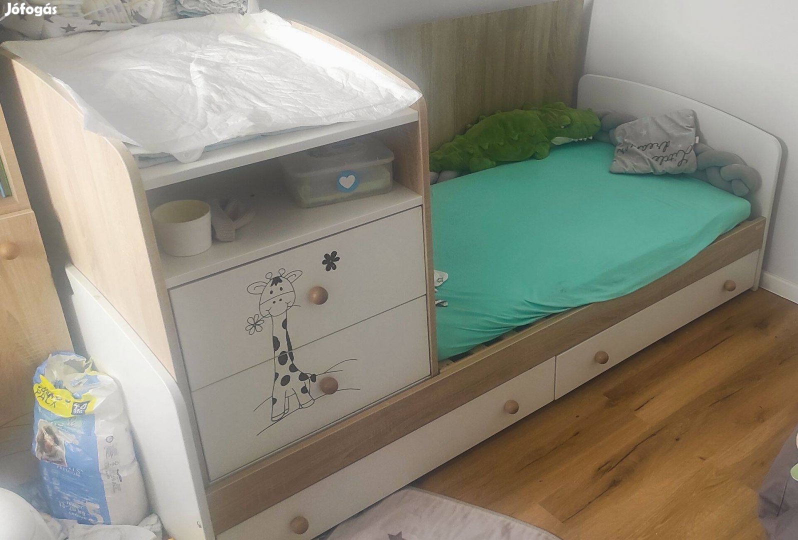 3az 1-ben jó állapotban lévő kiságy eladóvá vált nagyobbra cserélés miatt. Használható rácsos kiságyként, kiságyként, kisiskolás ágyként és íróasztalként.