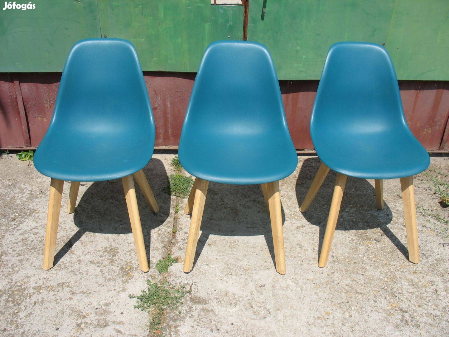 Használt, de szép megkímélt állapotban lévő, kék műanyag étkezőszékek. Szerkezetileg stabilak.