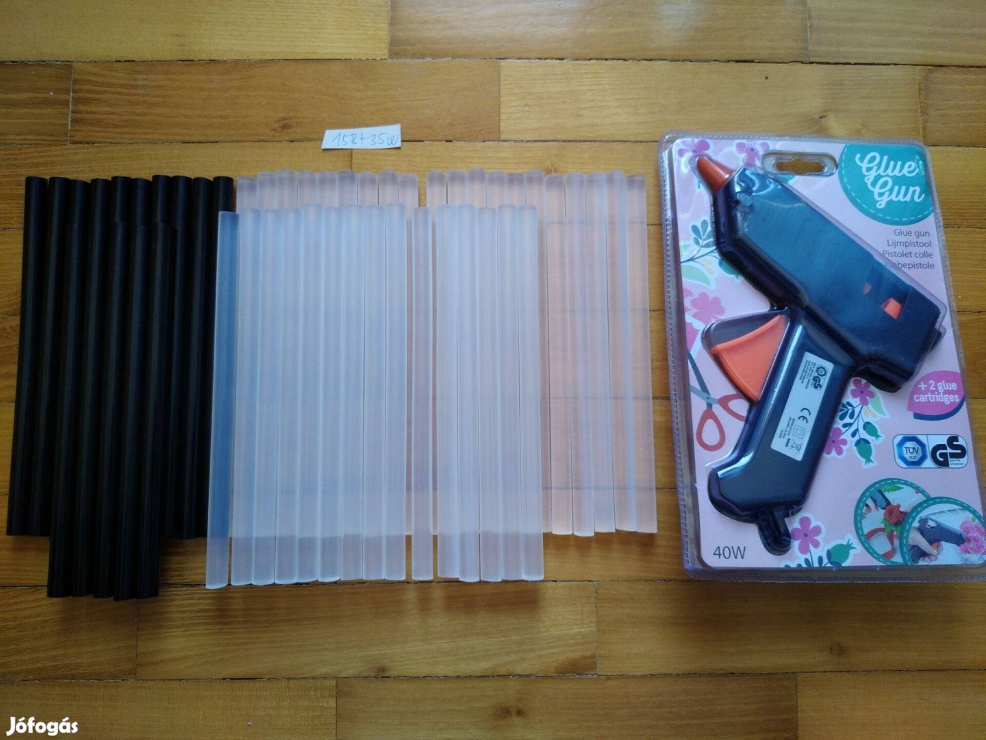 40W ragasztópisztoly+15 db fekete ragasztó rúd+36 db átlátszó rúd 20cm