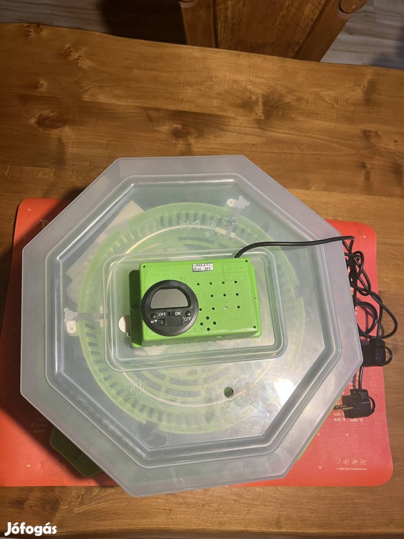 Eladó a címben említett, hő- és páramérős, 41 tojásos, automata forgatású Cleo5 keltetőgép. Rendelkezik külső csepptálcával.