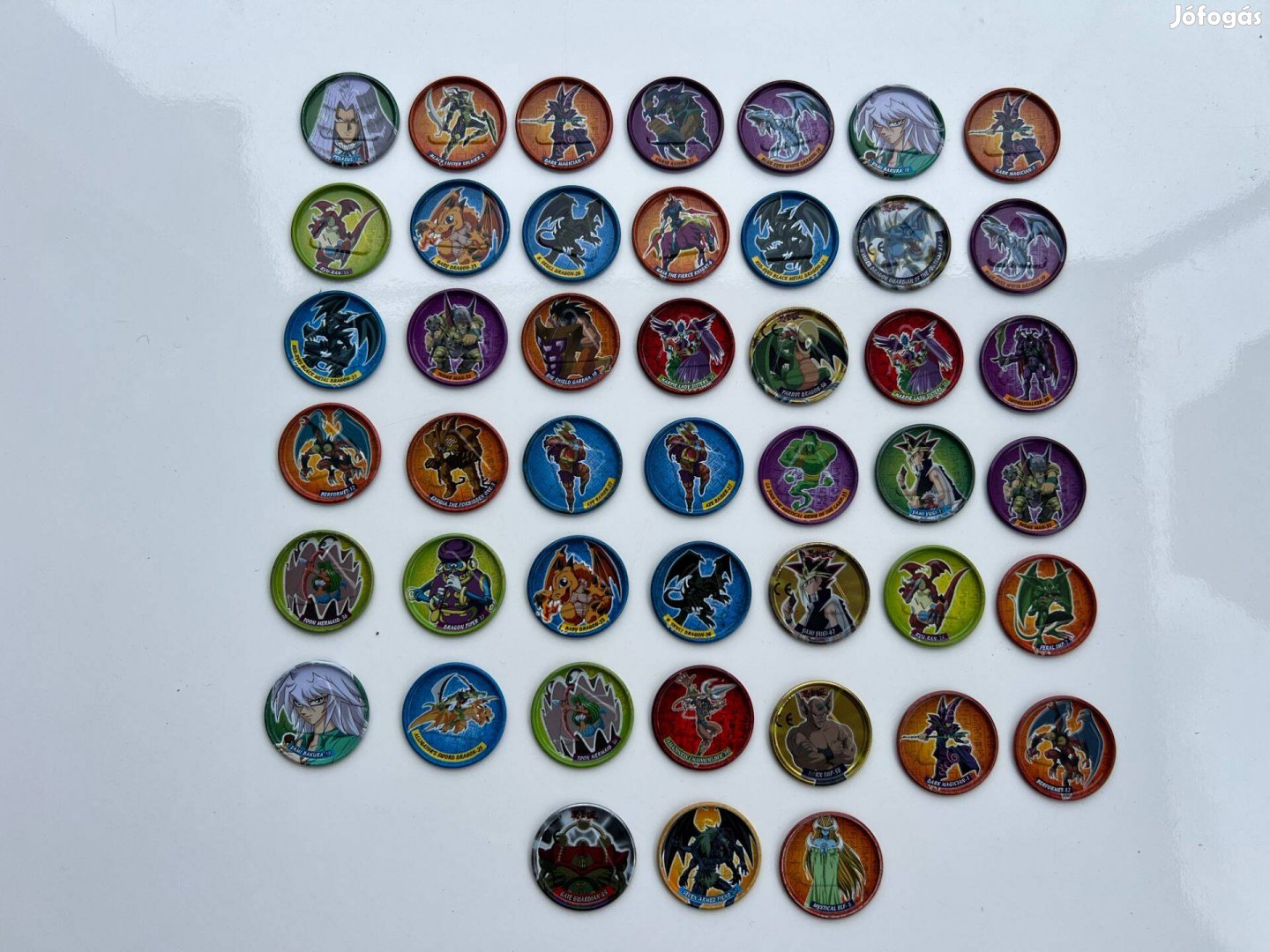Eladó a képen látható 45db 1996 -os Yugioh Yu-Gi-Oh Metal fém tazo.