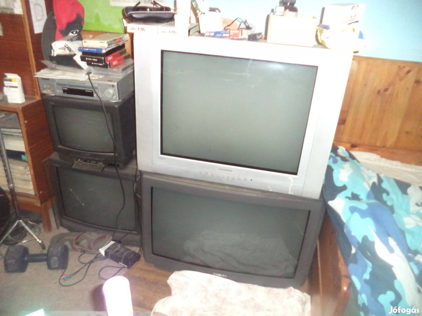 Grundig 72 cm Síkképcsöves.Philis szélesképernyős 82 cm.Sony 55 cm sony 37 cm.Csakis egyben.Mind múködik.Saját távval.a grundig és a philips 100hz.. .