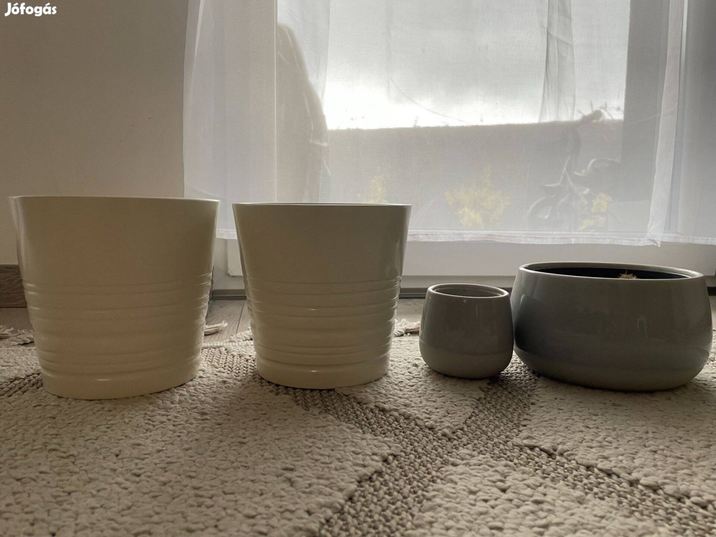 A nagyobb szürkéskék kaspó 13cm-es virágcserepeket tud befogadni, a kisebb 6cm-es.