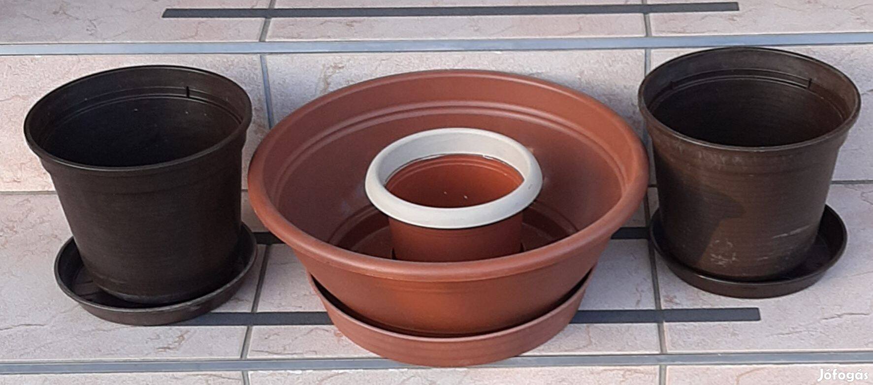 A képen látható virágcserepek használtak kivéve a nagy virágtálat, ez teljesen új.