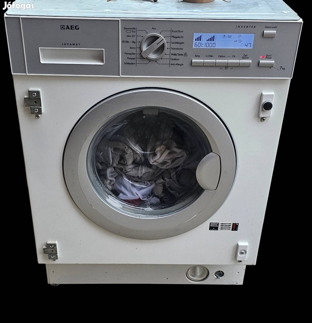 AEG Lavamat beépíthető mosógép 1400-ig állítható centrifuga, jet sistem,nagy digit kijelző,7kg töltő súly halk működés szép állapotban eladó.