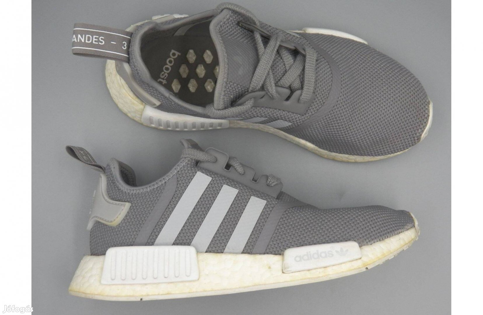 Keveset használt, nagyon szép állapotú Adidas NMD R1 gyerek sportcipő szürke színben. Talpélén helyenként elszíneződött, de más hibája nincsen!