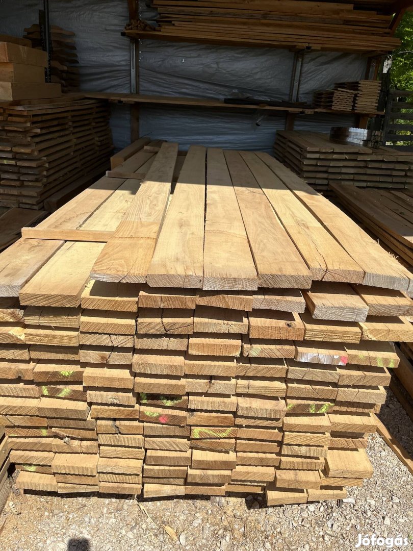 Szélezett, szélezetlen deszkák különböző méretekben.